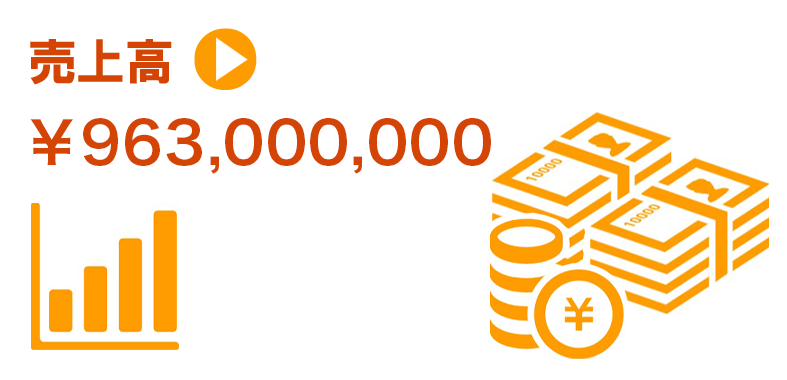 2015年度売上 4億5000万円 2016年度売上 4億9300万円 2017年度売上 4億4200万円 2018年度売上 6億1000万円 2019年度売上 8億2000万円 2020年度売上 9億6300万円 |